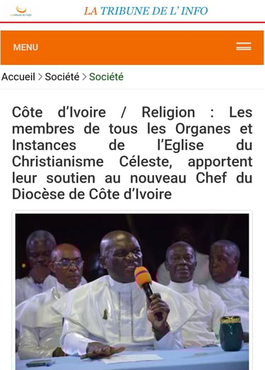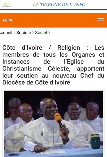 ÉCHANGE DES DIFFERENTES STRUCTURES DE L'ÉGLISE DU CHRISTIANISME CÉLESTE DE CÔTE D'IVOIRE AVEC LE CHEF DU DIOCÈSE JUSTIN KOUAMÉ ACKAH